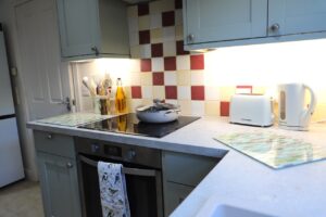 The kitchen has had a full refresh, designed to make cooking and relaxed meals a real pleasure. We’ve fitted new work surfaces, along with brand-new drawers and cupboard doors, all finished with soft-close mechanisms for a quiet, high-quality feel. A new fridge has been installed, giving you plenty of space for longer stays, and we’ve upgraded the sink and extractor to create a cleaner, brighter working area. To finish things off, the kitchen has been fully restocked with new cookware, plates, cups and glassware, so everything feels fresh, practical and ready from the moment you arrive.